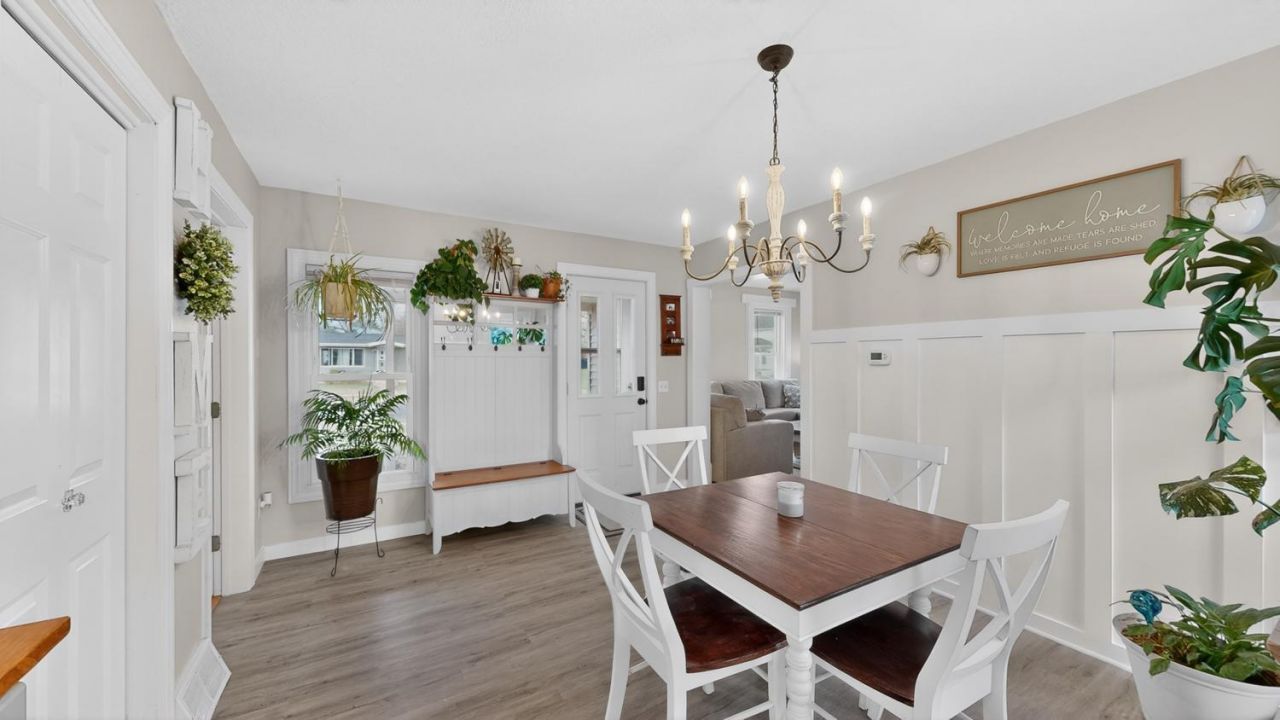 Charming and updated 4-bedroom, 2-bath home blending classic character with modern touches! The main level features a convenient bedroom and full bath, along with a spacious living room, formal dining room, and a large eat-in kitchen perfect for gatherings. Upstairs, you'll find three additional bedrooms and another full bath, offering plenty of space for family or guests.Enjoy relaxing mornings on the large covered front porch or entertain on the back patio overlooking the oversized yard. Located in a welcoming small-town setting with easy access to Rochester and the Twin Cities via Hwy 52, this home offers the perfect balance of charm and convenience.