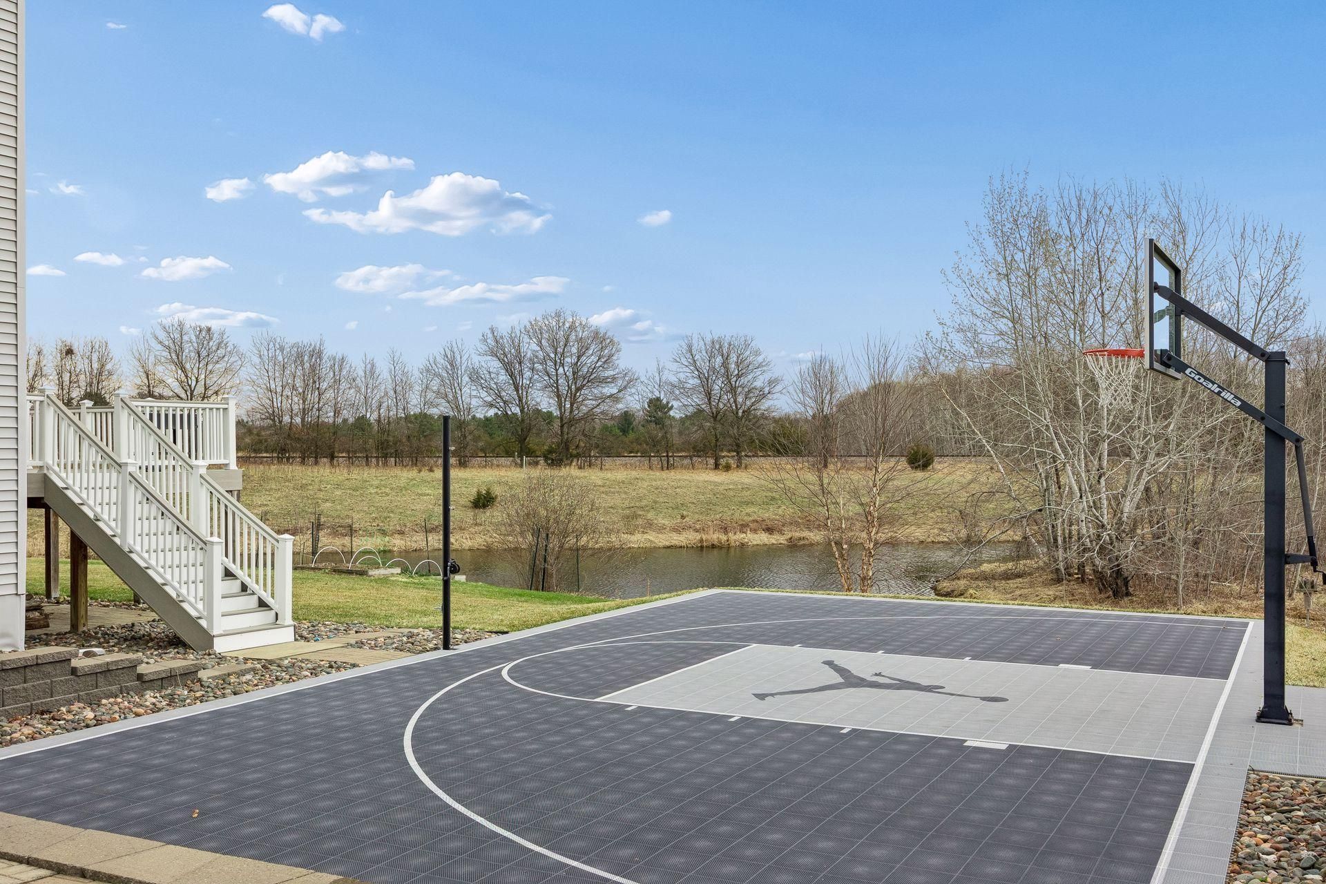Welcome to Country Oaks West?where space, comfort, and thoughtful upgrades come together on a stunning 1.25-acre homesite with serene pond views.The main level is designed for both everyday living and effortless entertaining. A spacious kitchen features a center island, walk-in pantry, and abundant storage, flowing seamlessly into both formal and informal dining areas. A dedicated study offers a quiet retreat for work or reading, while the mudroom?complete with three built-in lockers?keeps everything organized.Upstairs, you'll find four generously sized bedrooms, including a private Owner's Suite with a vaulted ceiling, walk-in closet, and a luxurious jacuzzi bath. Convenient upper-level laundry adds to the home's practical layout.The lower level is an entertainer's dream. Enjoy movie nights in your private theater with projector and screen, or host guests at the fully equipped wet bar featuring a wine fridge, dishwasher, and full-size refrigerator. Additional spaces include a game room and a versatile exercise room that can easily serve as a fifth bedroom.Outdoor living is just as impressive. Step onto the maintenance-free deck or gather around the fire pit overlooking the peaceful pond, which transforms into an ice skating and hockey rink in the winter. The expansive yard includes a garden and an outdoor sport court with a basketball hoop?perfect for summer fun!Energy efficiency shines with a geothermal heating & cooling systems and solar panels?eliminating monthly gas bills and keeps electrical costs remarkably low, averaging between $500 to $1,000 per year! This is more than a home?it's a lifestyle. Don't miss the opportunity to make it yours.