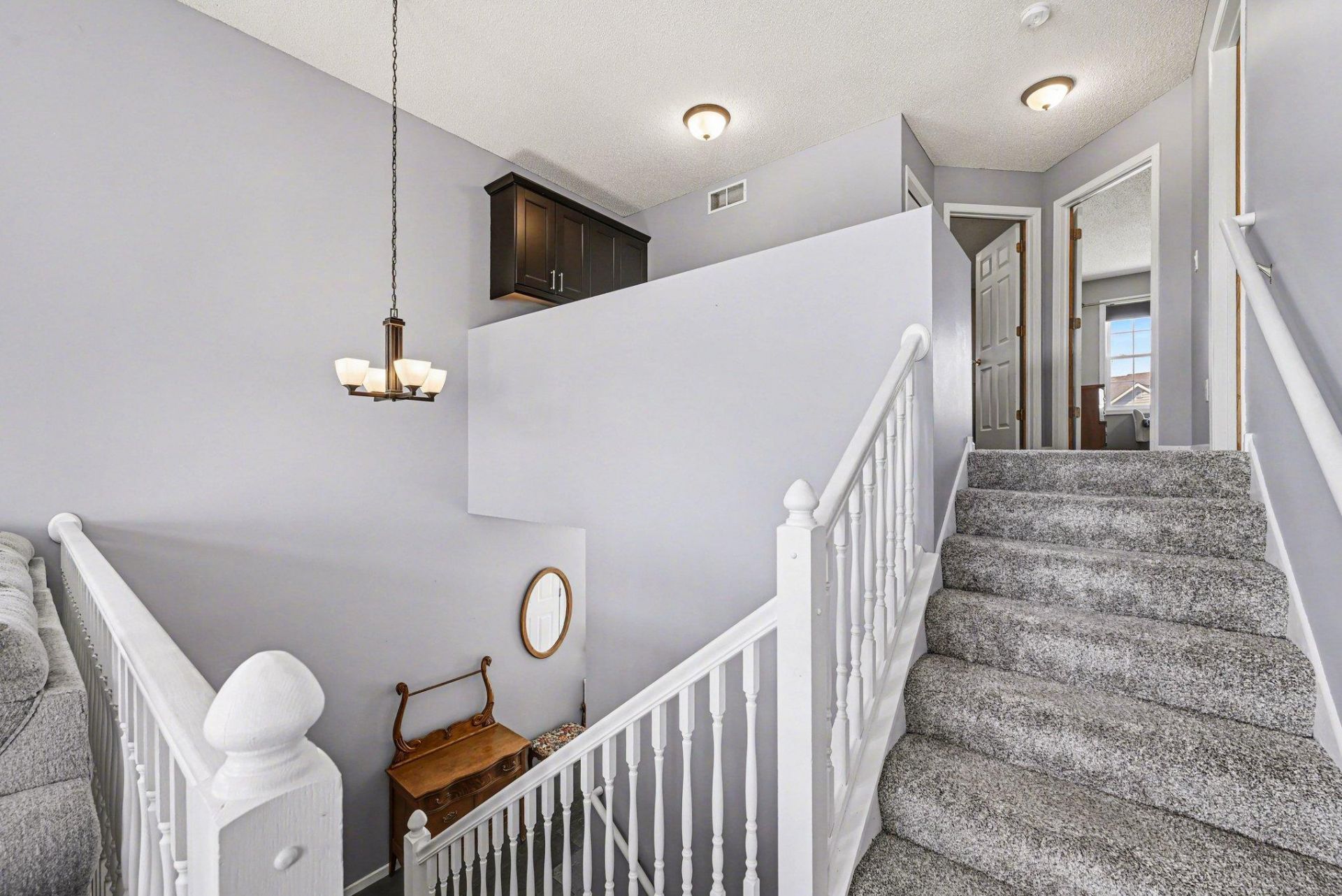 You will want to call this home! Beautiful end unit townhome in Southern Meadows Association. 18' ceilings with transom windows welcomes you into a large great room. Kitchen features white cabinets with black hardware and full tiled backsplash with loads of cabinet space & counterspace. Large kitchen island includes a breakfast bar area, and a ton of cabinets. Dining area leads out to brand new maintenance free deck. Backyard views are very private. Upper level features 2 bedrooms and a nicely appointed loft with built-in desk. Bath on this level is a full bath with dual sinks, separate shower and soaking tub. Large entry leads to walkout lower level family room with a beautiful floor to ceiling brick fireplace. Flex space offers an additional sleeping space, workout area or great office space. Large ¾ bath on this level and a full size washer & dryer. Double attached garage. Newer carpet & insulated garage doors (2023), air conditioner & maintenance free deck (2025), Pella bedroom windows (2026). A great place to call home!!