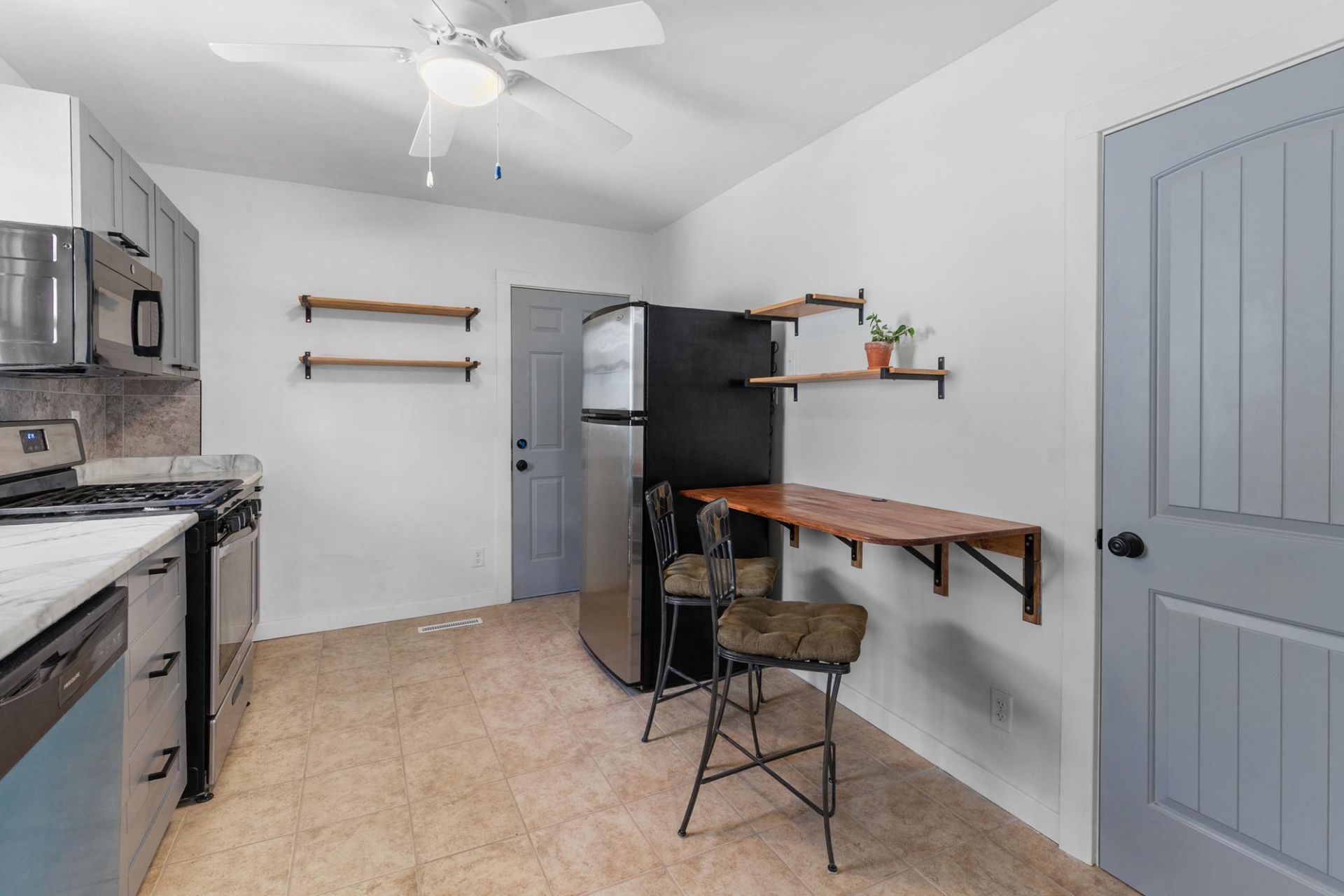 This home has been beautifully updated throughout! Nothing has been overlooked. The all-new Kitchen features a tile backsplash, new flooring, and stainless steel appliances. The new cabinets offer an abundance of storage. The Kitchen features spacious countertops along with a new dishwasher and new microwave. Enjoy the extra seating at the breakfast counter. The Four Season Porch will become your favorite room, perfect for morning coffee. Its new double-pane windows offer an abundance of natural light. The completely redone full Bath features a new tub and surround, and vanity. There's new LVP flooring, light fixtures, doors, and hardware throughout the home. The three Bedrooms are light filled, and the Primary features new barn doors. Brand new Furnace, A/C, and Water Heater! The Roof was replaced in 2017. All of the updates provide stylish and worry-free living. The spacious and level backyard is perfect for all of your get togethers. Don't miss the chance to make this wonderful home yours!