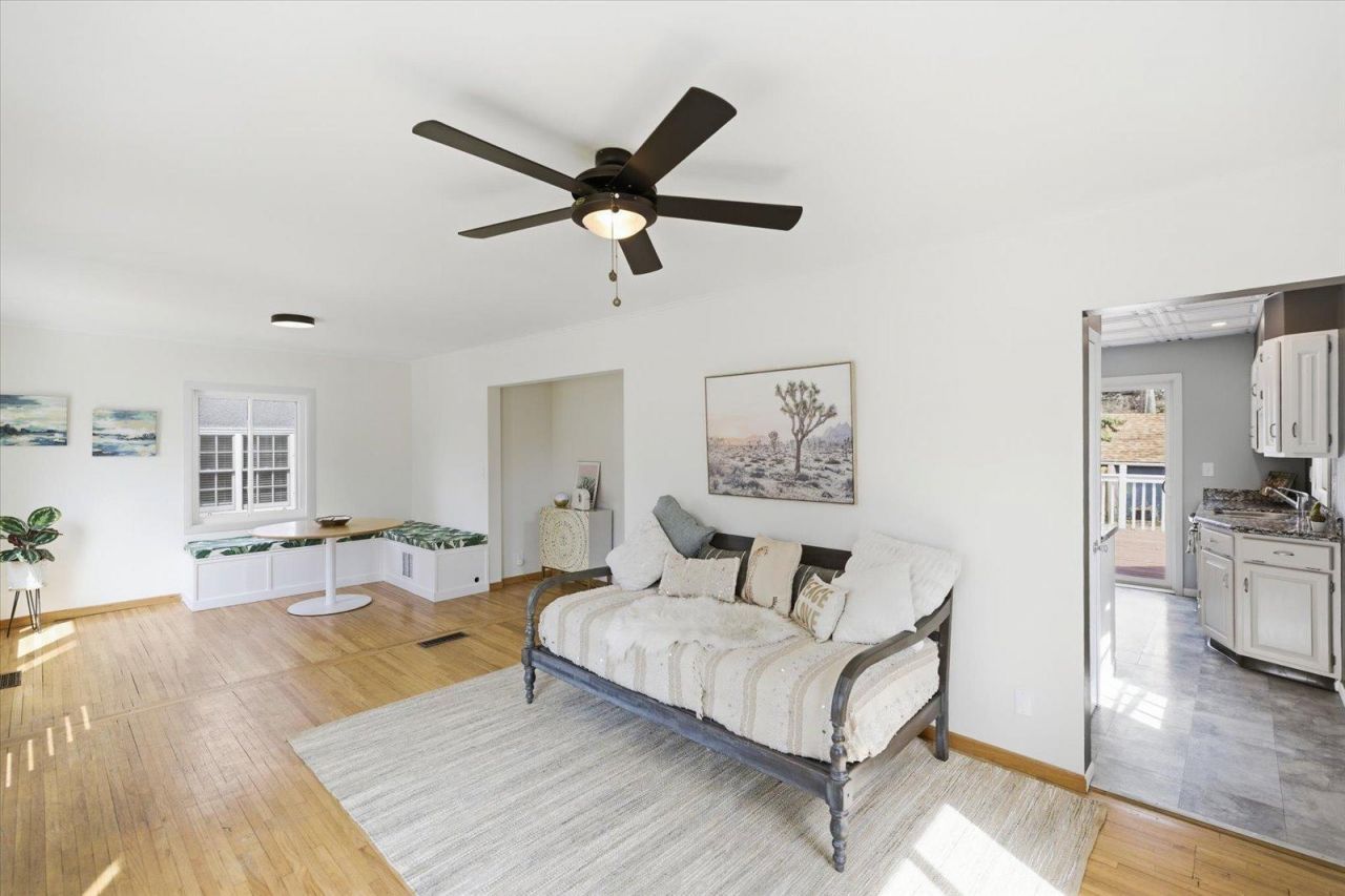 Welcome to The Button House!Gorgeous, natural light floods the home and creates an airy, sparkling home that feels more spacious than its footprint.Upon walking through your sunshine yellow door, a soft and sophisticated colour palate greets you in the living area, which includes a custom-built dining nook, complete with built-in storage.The sun-filled kitchen features granite countertops, an abundance of cabinets and flows seamlessly out to a large deck for entertaining friends and family.Your own spa-getaway awaits you in the oversized, full bathroom on the main level, with a gorgeous jetted, soaking tub.Upstairs is a large master bedroom boasting beautiful brand new carpet (2026), double closets and an en-suite bathroom, professionally remodelled in 2022.The second bedroom is freshly painted and functions perfectly as a bedroom or office space. Also, tucked away upstairs is a sweet reading nook with built-in shelving.Downstairs, a fully finished basement makes the perfect family room for cosy tv nights, and potential for expansion to a third bedroom.Outside, a riot of colour blooms throughout the growing season with an extensive array of perennials, shrubs and seasonal bulbs planted in both the front and back of the home, including raspberries, strawberries and a pear tree. Soaker hoses are installed in the garden beds for a stress-free, lush landscape, and the fenced yard offers privacy and seclusion.New homeowners can rest easy knowing the home has been intentionally and thoughtfully updated with a new roof (home and garage) using top-tier architectural shingles (2020), a new front door and premium James Hardie Fibre Cement Plank Siding (2020). High quality energy efficient windows were replaced throughout the home in 2019 and 2024. The concrete paths in the front and side of the home were replaced in 2021, and a radon mitigation system installed in 2025. The furnace has been updated with a new heat exchanger and the A/C received a seasonal tuneup in April of this year. The interior of the home was professionally painted in 2026, along with professional carpet cleaning of the lower level.This adorable home is located in the high demand neighbourhood of Audubon Park in Northeast Minneapolis. It's a short, five minute drive to the Quarry Shopping Centre for all your everyday needs, and parks, playgrounds, restaurants and coffee shops are all within an easy walking distance.