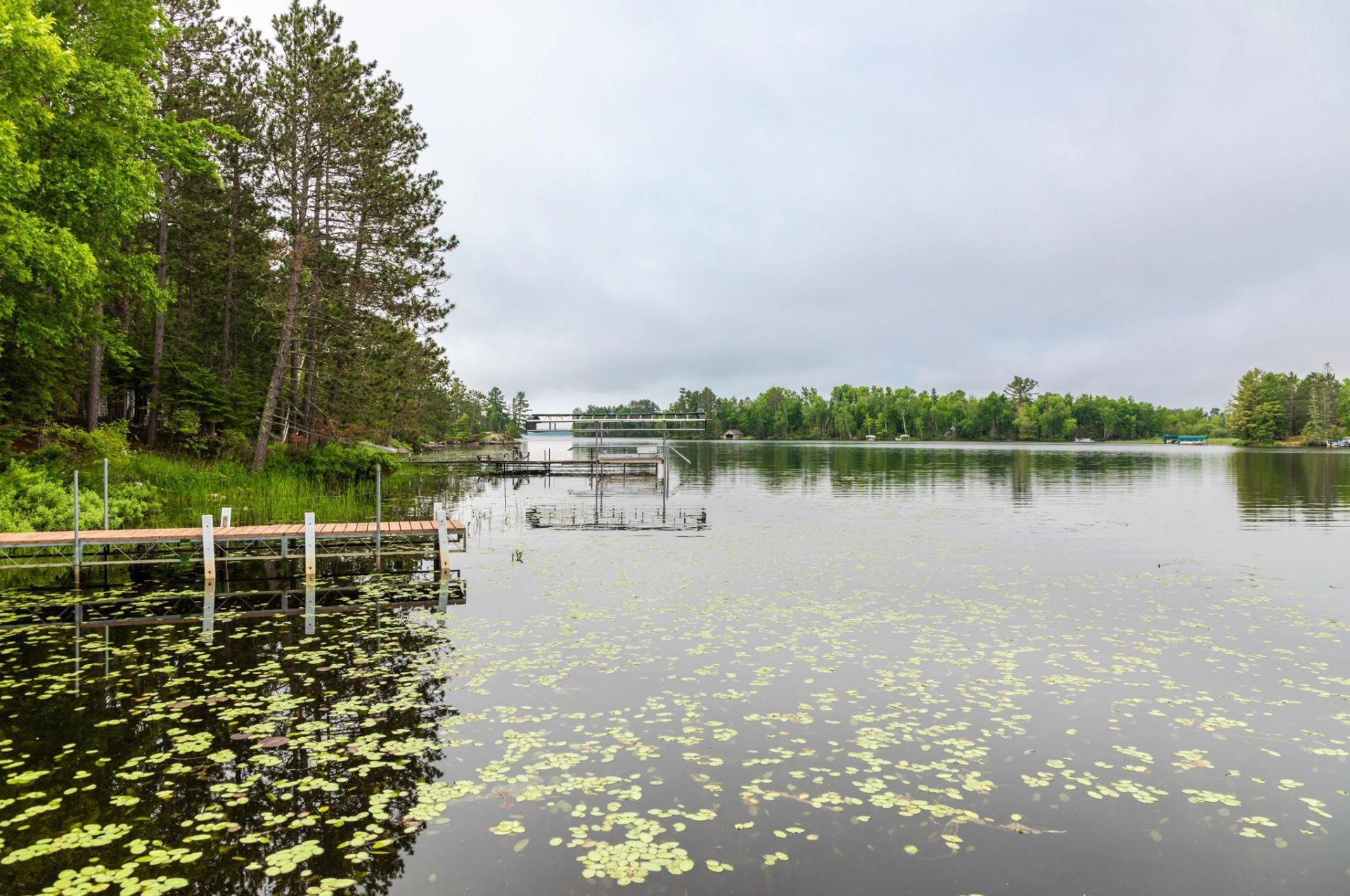 Do not miss this beautiful tree filled property on the highly desirable Lake Vermilion. This nicely updated cabin is conveniently located just minutes from Cook, MN. This property features a 2-bedroom 1 bathroom cabin and a 2-bedroom 1 bathroom bunkhouse above the detached garage. Both spaces have natural woodwork, vaulted ceilings, and kitchens. The cabin has a large deck with beautiful views of the lake and the sun going down. A separate lakeside wood fired sauna and screen porch add to the enjoyment. This lot gradually flows to lake and has 130ft of shoreline. This property comes with the two rolling docks. Most furnishings are included in sale.