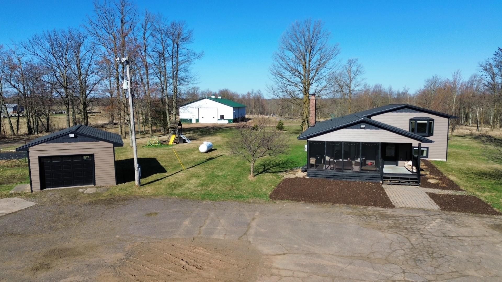 Beautiful and well-maintained 55 acre property just outside Isle offering the perfect setup for hobby farming, horses, or a trucking business with room to grow. Ideally located just off Highway 65 for an easy commute, while still enjoying privacy and space, this property features a massive 50x104x16 shop with in-floor heat powered by an outdoor boiler plus a secondary Modine (hotdog) heater, making it ideal for equipment, storage or business use, along with fencing and a stable area in the pole shed ready for horses or livestock. The home has seen extensive updates including new siding and roof (2023), septic system (2021), AC new in 2021, new well (2023) with pressure tank (2025), updated electrical panel (2024), boiler (2023), off-peak water heater (2025), furnace gas valve and burners (2025), water lines to the shop and livestock waterer (2023), new dishwasher (2025), and newer carpet in the lower level. Enjoy a wood burning fireplace, screened-in front porch, two washers and dryers, and a functional layout suited for country living. The land features three ponds, mature apple trees, and a ready-to-plant garden area, plus a Ritchie automatic livestock waterer already installed. Bonus 3/4 bath in the shop adds convenience for work or hobbies. Located on a quiet road with 115th Ave scheduled to be paved this summer, improving access and long-term value. A rare opportunity to own a turn key acreage with serious outbuilding capacity and endless potential. Comes with a one year home warranty.