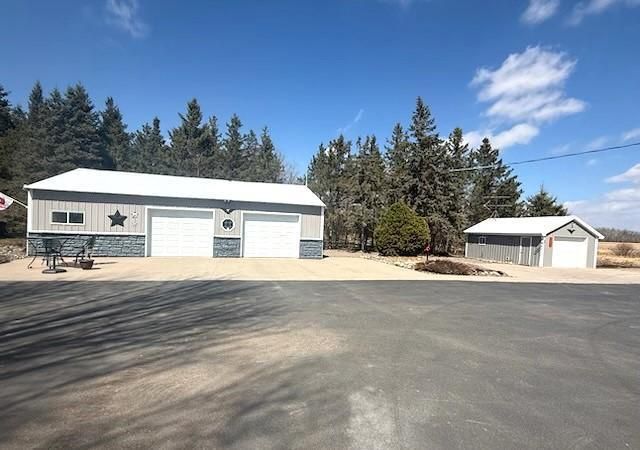 Welcome to your private slice of the countryside! This spacious 4-bedroom, 2-bath home is nestled on 4.07 beautifully wooded acres offering peace, privacy, and room to roam. Surrounded by mature trees?including several apple varieties?this property is a nature lover's dream. The home features durable steel siding, a large deck for relaxing or entertaining, and updated windows throughout (approximately 12 years ago). Inside, you'll find a thoughtful layout with 2 bedrooms and a full bath on the upper level, and 2 more bedrooms plus a 3/4 bath on the lower level. The upper-level bath and kitchen are upgraded with Cambria countertops. Enjoy cozy gatherings in the main floor living room, while the lower level boasts a spacious family room, the oversized 3/4 bath, 2 BR's and a well-equipped laundry area complete with sink and folding counter. This property truly shines with its array of functional outbuildings: 8x12 insulated dog kennel with electricity, 28x40 detached garage, 14x22 insulated shed, and a 32x60 pole shed ? ideal for equipment, storage, or hobby use. Don't forget the extra-large 30x40 stamped concrete area! Whether you're seeking a quiet country lifestyle, space for hobbies or animals, or simply room to spread out, this well-maintained property has it all!!