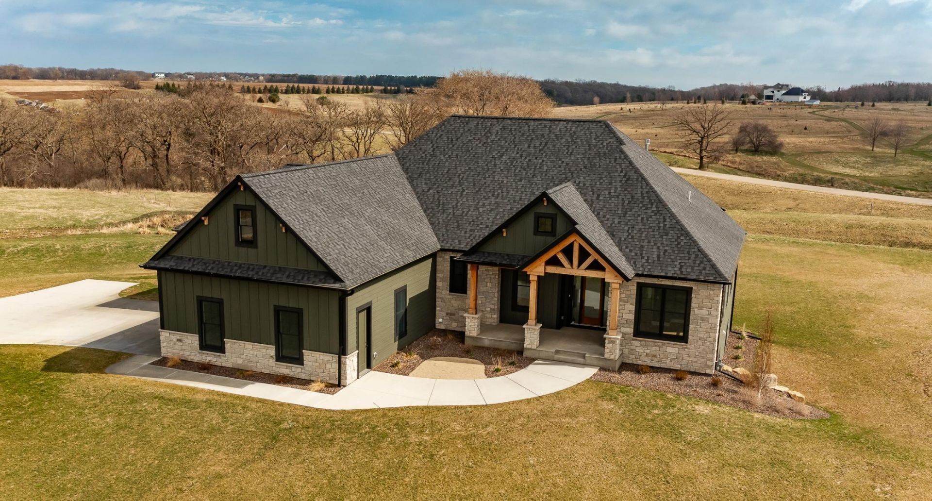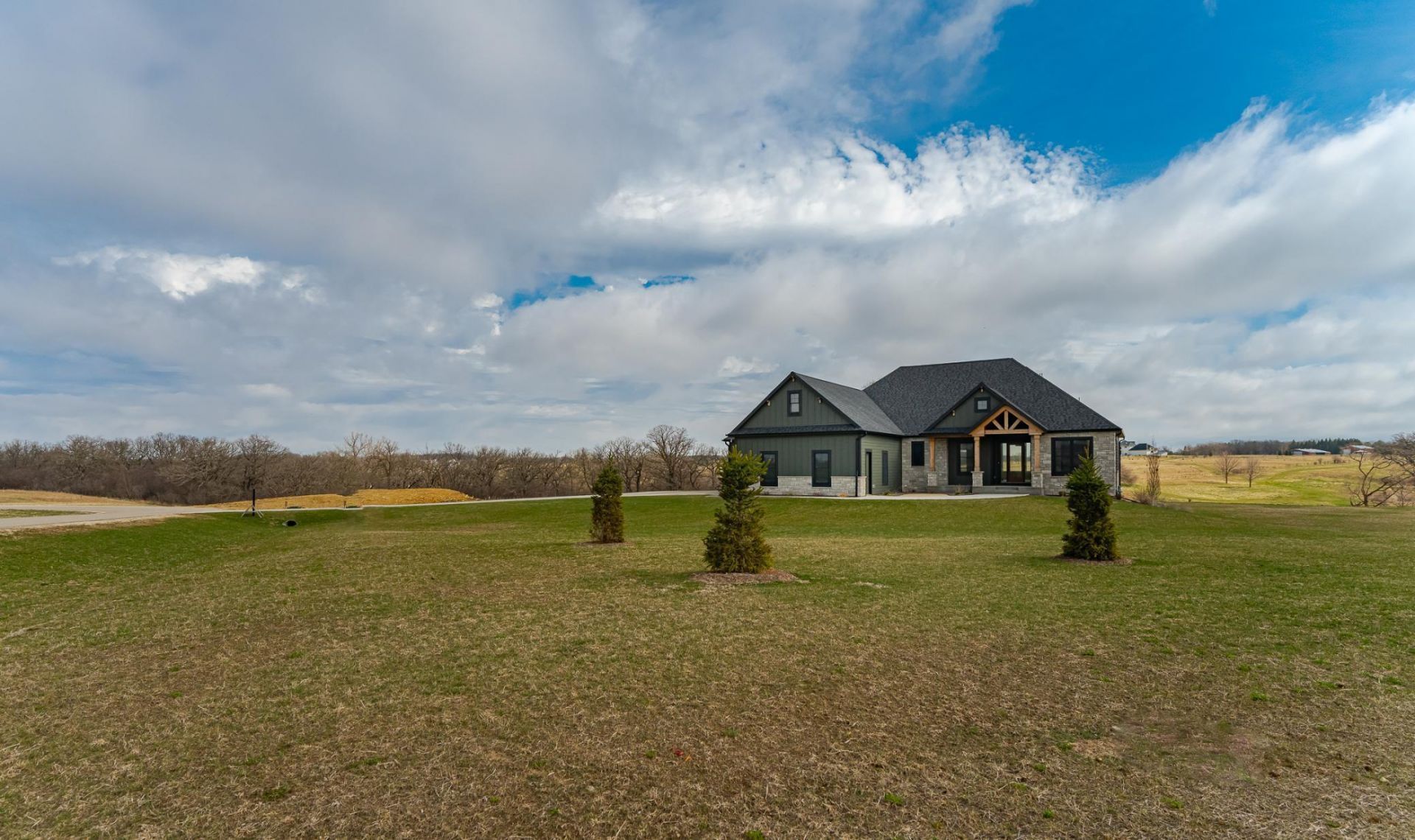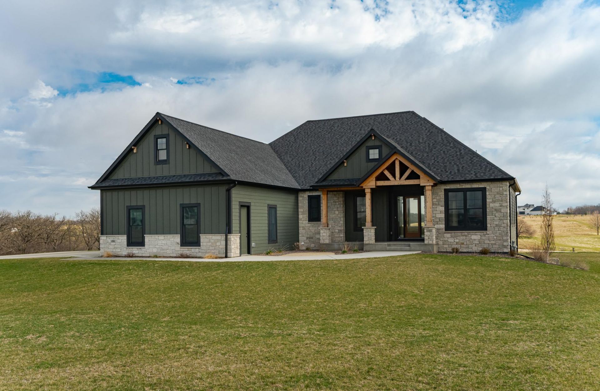 Beautiful fully finished brand new ranch style home. Situated on a 3.51 acre lot with fantastic views of the countryside. Wonderful new sought after subdivision, lot and floor plan with very good quality finishes throughout! Neutral decor, light filled rooms, move in condition, wood floors, 2 fireplaces, built-in cabinetry, tall ceilings and doors, tall and large windows with unobstructed panoramic views, large open floor plan on main floor! Attractive curb appeal with beautiful stone work, tall hip roof, attractive accents and large windows. Main Floor feature: An amazing large open floor plan with large living room with tall ceiling & windows, gas fireplace and built-in cabinetry, a large informal dining area, a large beautiful eat-in kitchen with large center island, 2 sinks, all kitchen appliances and walk-in pantry. Fabulous large office. Large primary bedroom suite with large bedroom, large private bath with free standing tub, separate shower, double sinks and large walk-in closet. Another bedroom and a full bath. Large mudroom with built in cabinetry, laundry with window, washer and dryer. Patio doors open to the large screened in covered deck with stairs to the backyard. Finished and heated attached 3 car garage with an epoxy floor and floor drain. Lower Level features: large windows, great views and lots of light. Bonus room/exercise room/office. Large family room with gas fireplace, lots of built-in cabinetry, a striking wet bar, game room area, full fridge, dishwasher and microwave. 2 additional bedrooms and a full bath. Storage room, Utility Room.