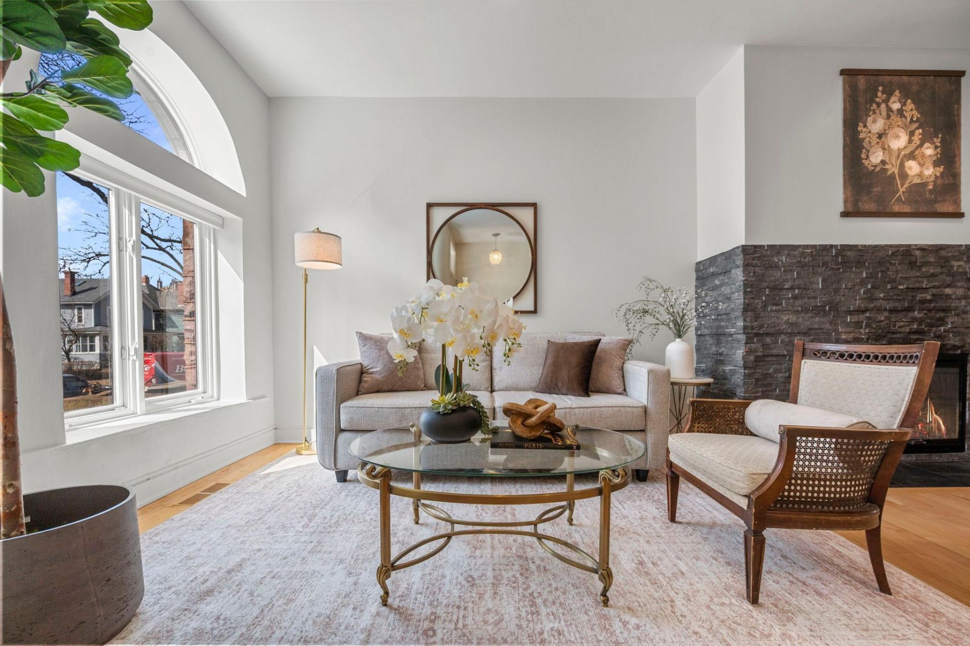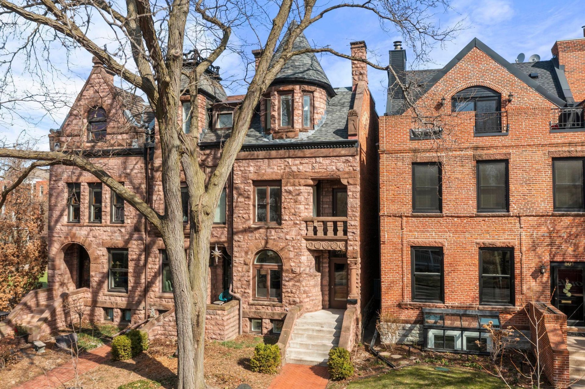 Iconic brownstone masterpiece in the heart of Cathedral Hill! Part of St. Paul's iconic Holly Row. This stunning four-story home truly resides in a class of its own. Thoughtfully renovated with no expense spared. Abundant natural light creates a striking contrast between the dark stone exterior and the BRIGHT, airy interior, it's truly magical! Open, flowing spaces are perfectly balanced with private wings and cozy nooks. Gleaming hardwood floors, tall ceilings, and a mix of painted and exposed brick combine timeless charm with a fresh, modern edge. Step outside to the show stopping rooftop patio, an unforgettable spot for entertaining or relaxing under the stars. Renovations include roofs (2nd & 3rd floors), EV charger, heated gutters, zoned HVAC, updated AC, designer Hennepin Made lighting, renovated bathrooms, and more. This architectural gem blends historic elegance with modern luxury.