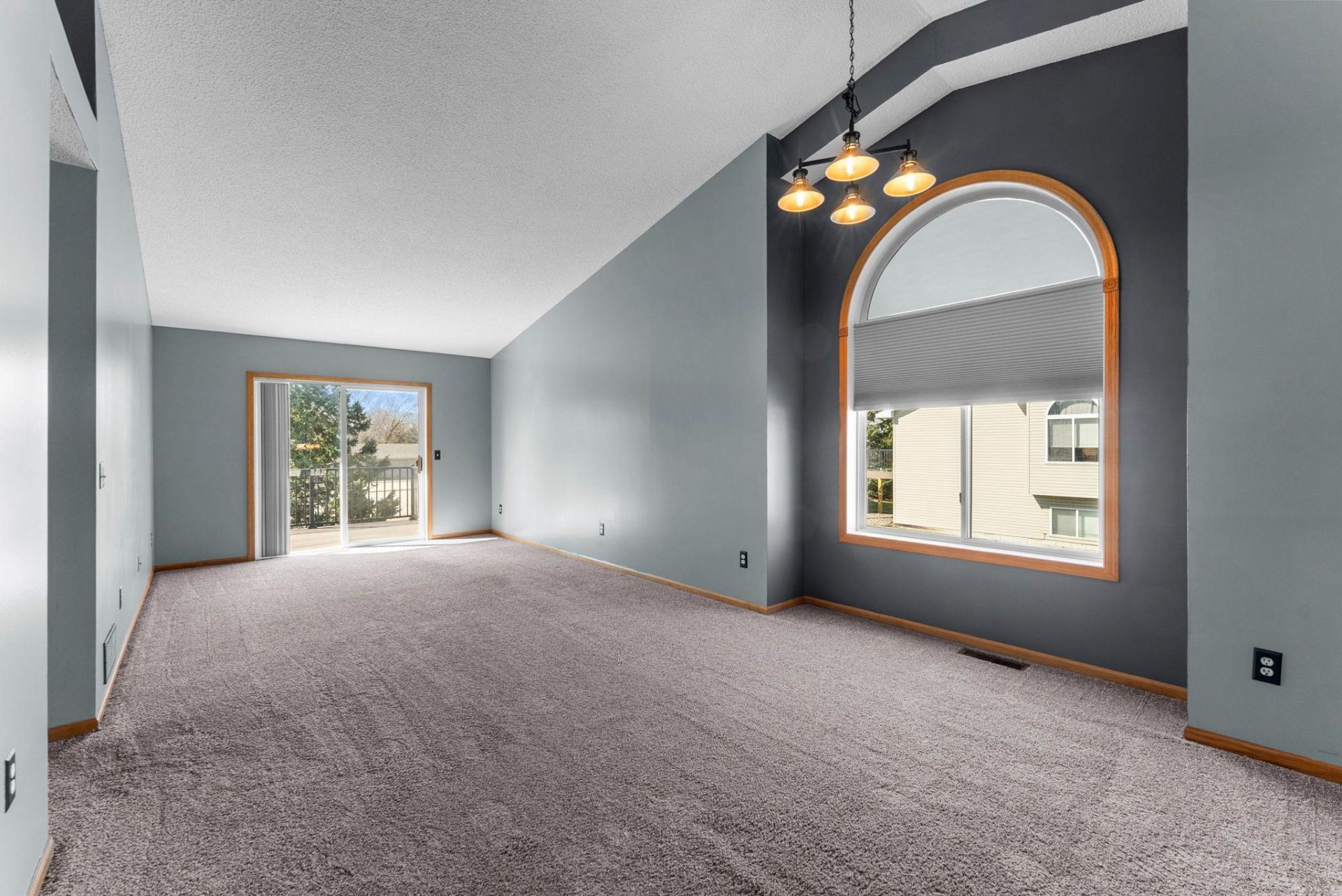 This spacious end-unit split-level townhome features an open layout with vaulted ceilings. The dining room includes a half-round window that provides natural light, while the private balcony offers a dedicated outdoor space. With three bedrooms and two bathrooms, the home is designed for functional living. The property is conveniently located near commuter routes, providing easy access for travel. Residents will also enjoy being within close proximity to local dining, multiple neighborhood parks, and the Rum River.