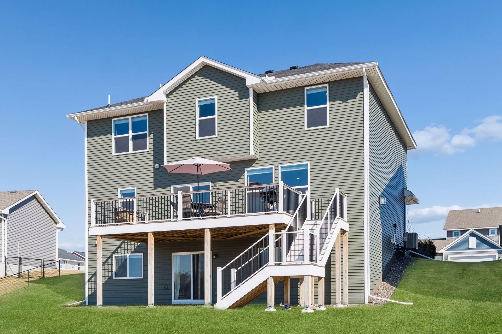 Don't miss your chance to own this outstanding, virtually new 5BR/4BA 2-story Andover home (only 3yo) without all the new construction headaches! This meticulous home already has all the 'new construction to-do list' items done for you with nearly $100k in improvements: finished lower level, XL 24'x 12' maint-free deck w/ stairs, custom blinds throughout home, gutters, & water softener. Premium lot backed up to a wetland area w/ pond. So many wonderful living spaces over the 3 finished levels. Great room features a gas fireplace w/ white stacked stone surround to ceiling. Spacious kitchen features a center island w/ seating, quartz countertops, corner pantry, GE S/S appls, & tile backsplash. 4 BRs on upper level w/ add'l BR in LL. Convenient upper level laundry room. Finished lower level walks out to back yard. 3-car garage. Irrigation system. Enjoy the neighborhood park and walking trails. Don't miss out!