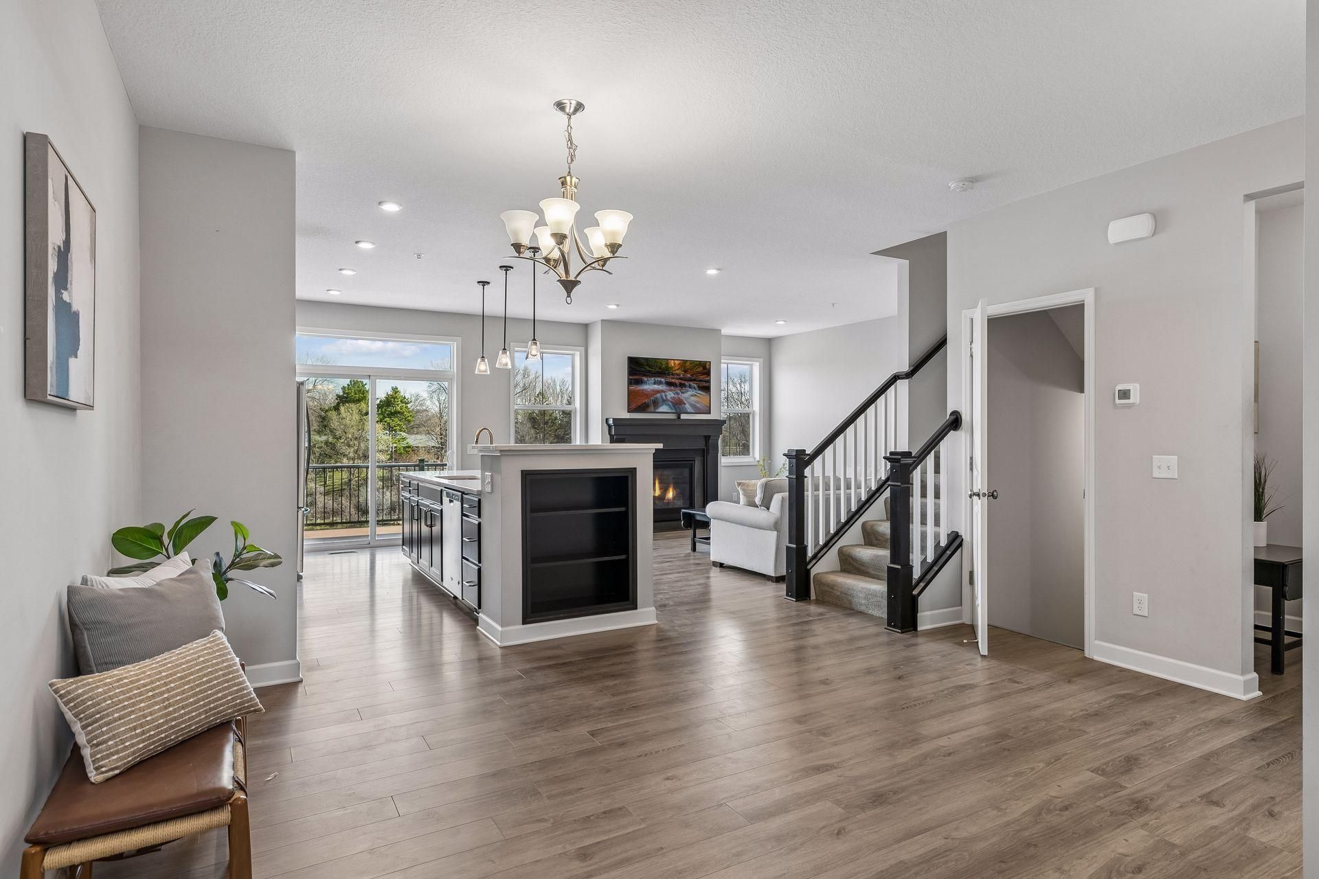 This stunning 4-bed, 4-bath luxury walkout townhome offers one of the best lots in the community! This pond view property offers year-round peace, privacy, and beauty. Inside, you will find high-end finishes throughout and an open layout with abundant natural light. The recently remodeled kitchen includes a large center island, quartz countertops, backsplash, and a deep single tub sink, ideal for everyday living and entertaining. The spacious living room is anchored by a gas fireplace, creating a cozy space for all to gather. Upstairs, you'll find three generous bedrooms, including a primary suite with tray ceiling and a huge walk-in closet. The finished walkout lower level includes a large family room, a 4th bedroom, and an additional bathroom. Located in highly sought-after ISD 196 with easy trail access right out your back door; minutes from the airport, major freeways, shopping, and dining! Location is unbeatable. New roof, new AC, and new furnace in 2025.