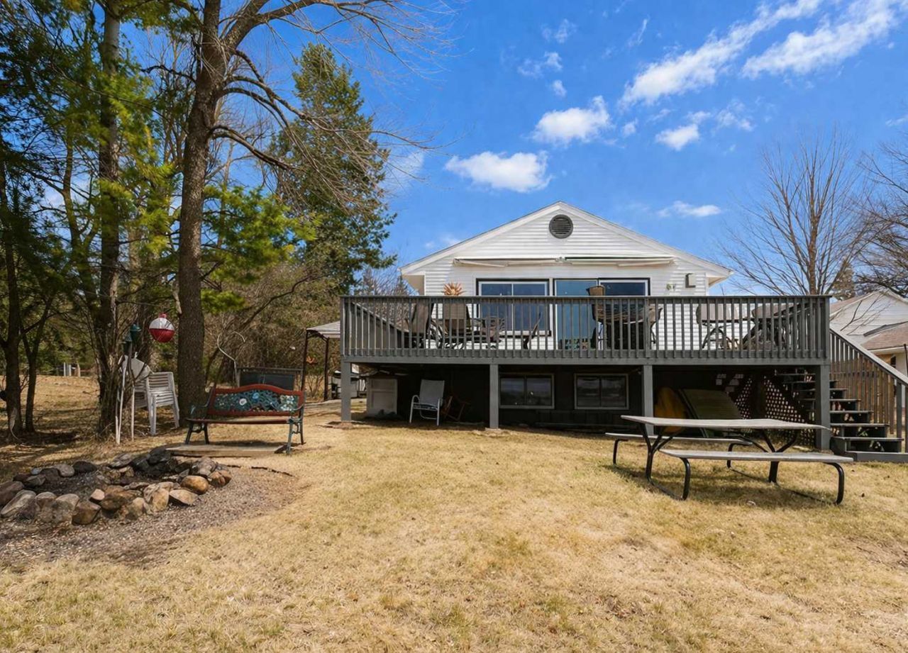 Welcome to Lake Carnelian?where year-round lake living meets comfort, style, and incredible views! This beautiful home offers everything you need to relax and enjoy life on one of the area's cleanest lakes. It's known for its great water clarity, sandy shoreline, excellent for swimming and fishing. You'll love unwinding on the spacious 30' deck, with views of the most amazing sunsets. You can escape the sun with the attached awnings for shade and comfort. Step inside to an open-concept main level with a warm, inviting living room complete with a stone fireplace. Oversized patio doors and expansive windows flood the space with natural light and showcase breathtaking lake views. The kitchen is designed for function, offering updated stainless-steel appliances, abundant counter space, a pantry closet, and a large center island with a gas cooktop. The main floor also boasts a generously sized primary bedroom, an additional bedroom, and a bathroom. You will love the rich hardwood floors throughout. The lower level is built for entertaining, featuring a large family room with a wet bar, a full bathroom with laundry, and an additional bedroom. There's also a bonus room with an egress window?ready to become a fourth bedroom with the addition of flooring. A separate room connected to the family room offers abundant storage. Conveniently located with easy commute access to Hwy 55 and I-94, this home offers the perfect balance of peaceful lake life and everyday accessibility. Don't miss your chance to own this incredible Lake Carnelian retreat!